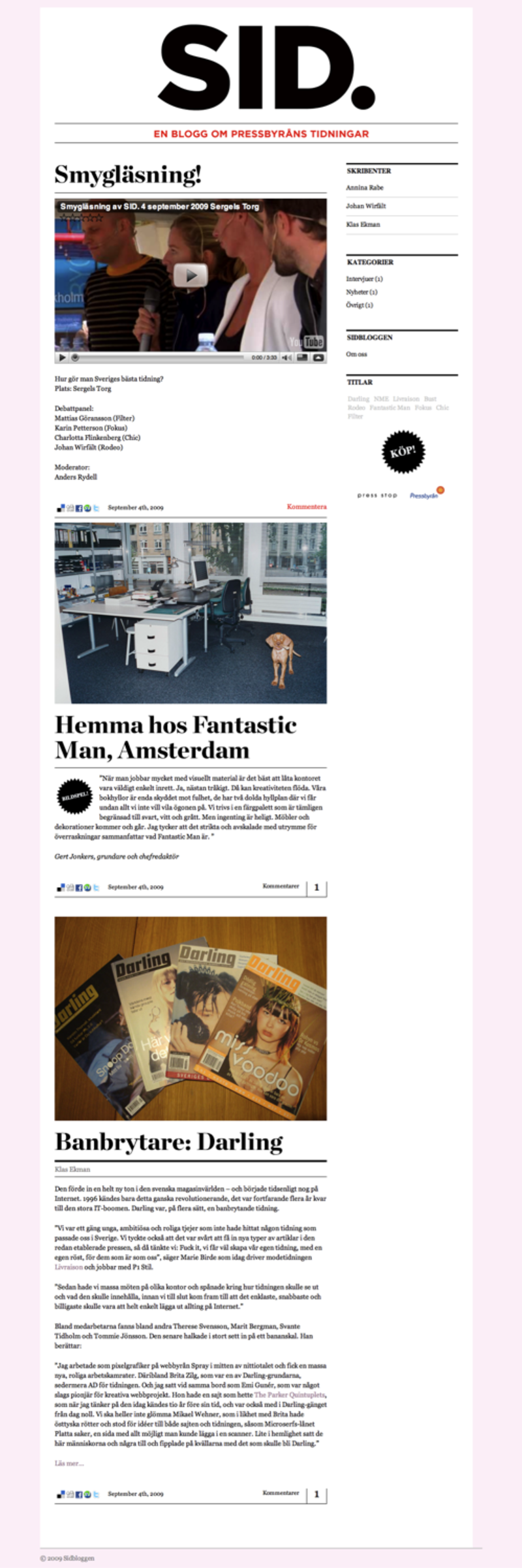 Sidbloggen 5 september 2009 Gunnar Gillar du tidningar gillar du Sidbloggen från Pressbyråns tidning “Sid”. Photos (2598)