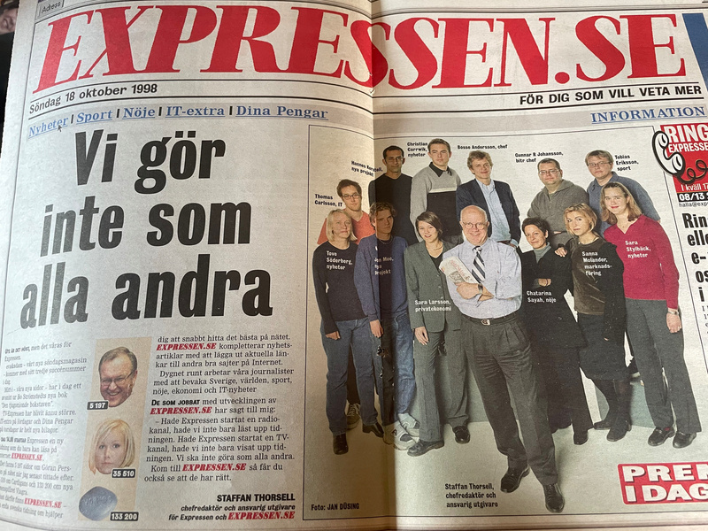 Premiär för expressen.se Mittuppslag. 25 år sen i oktober. Och vår unika USP var att vi hade länkar ut på Internet vid alla artiklar. Slogs som en dåre för detta. Och gärna länkar till konkurrenter. Tror vi länkade till Aftonbladet redan första dagen.
